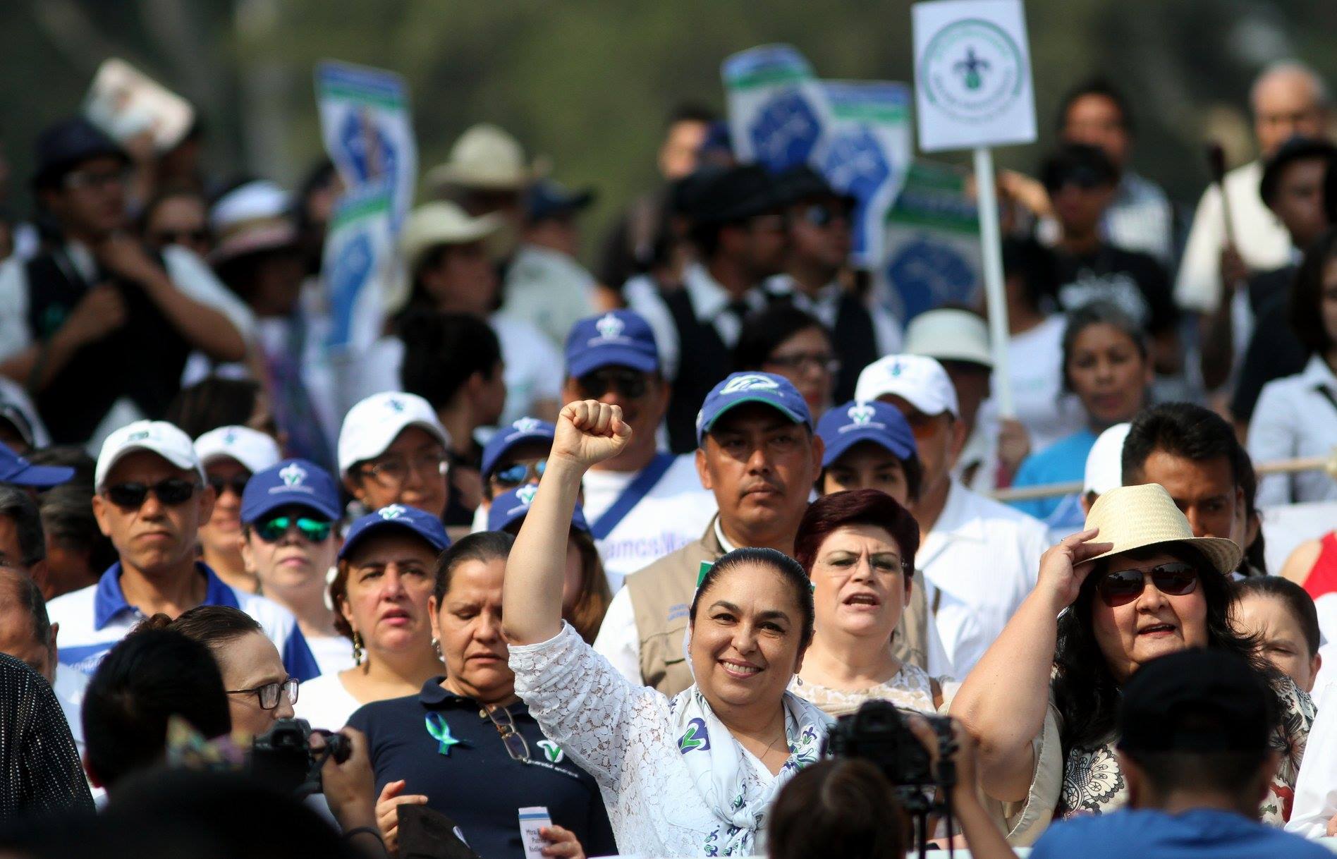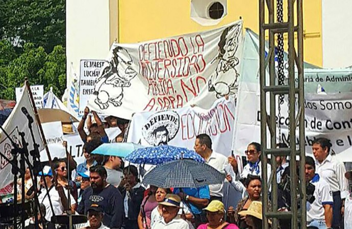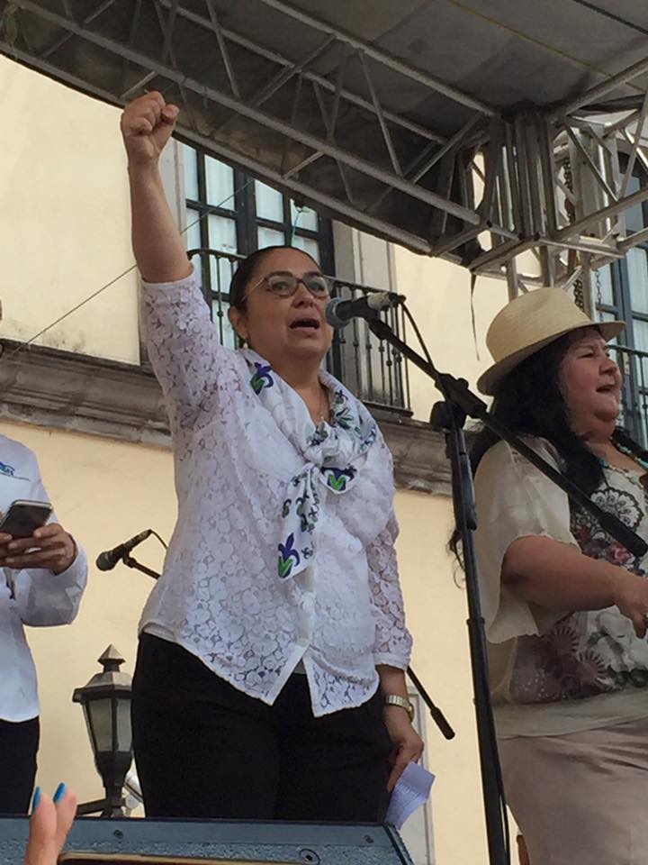 Y en el templete estuvieron la rectora Sara Ladrón de Guevara, la Secretaria de Finanzas, Clementina Guerrero, el dirigente del Fesapauv, Enrique Levet Gorozpe.